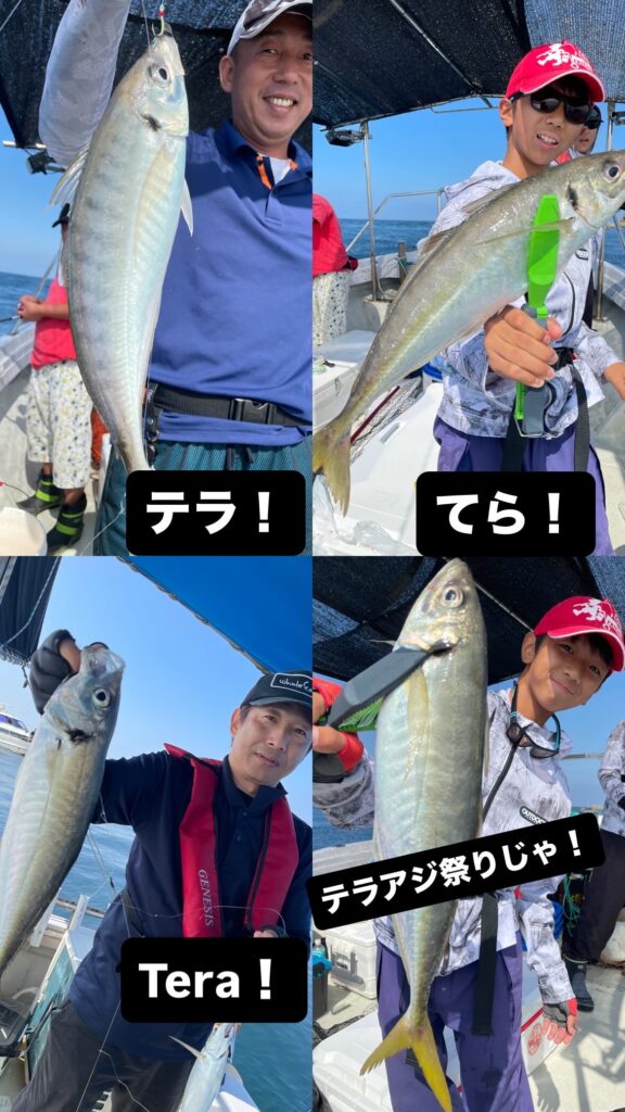その後もテラ、大中小のアジメインで半日ほど釣れ続けました!