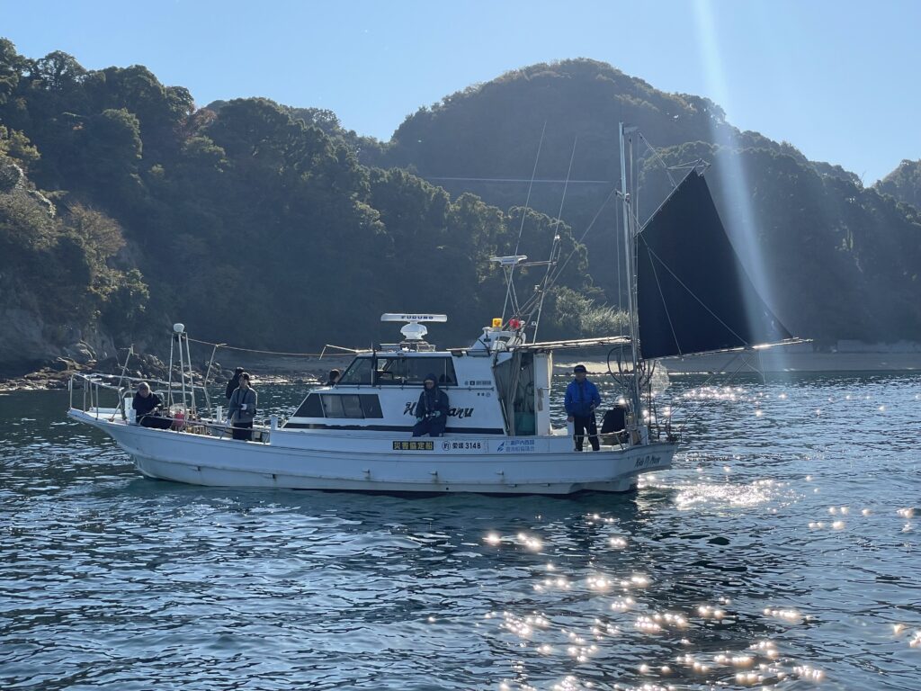 三津浜港の英丸にも協力してもらい、2隻体制で元気に出船!